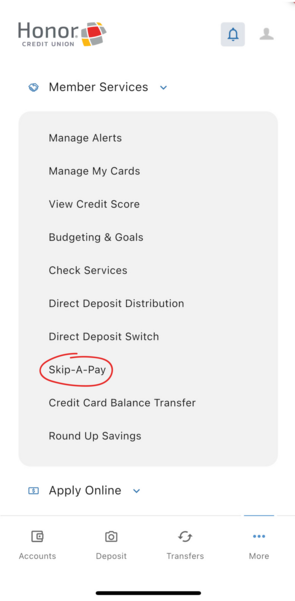 By completing a Skip-A-Payment you are requesting Honor Credit Union to advance the loan due date equal to one month’s payment. You understand that the current balance of the loan is extended by the amount of the payment skipped and that interest will continue to accrue on your loan balance throughout the deferred payment period, which may further extend the term of your loan. If there is more than one borrower on a loan, only one borrower is required to authorize a Skip-A-Payment request. Using Skip-A-Payment on an auto loan may impact your GAP (Guaranteed Asset Protection) benefit if applicable. Please note that GAP coverage only allows for one skip payment for the life of the loan. If GAP was purchased at the dealership, these restrictions could differ. For more information on your GAP coverage, please give us a call at 800.442.2800.